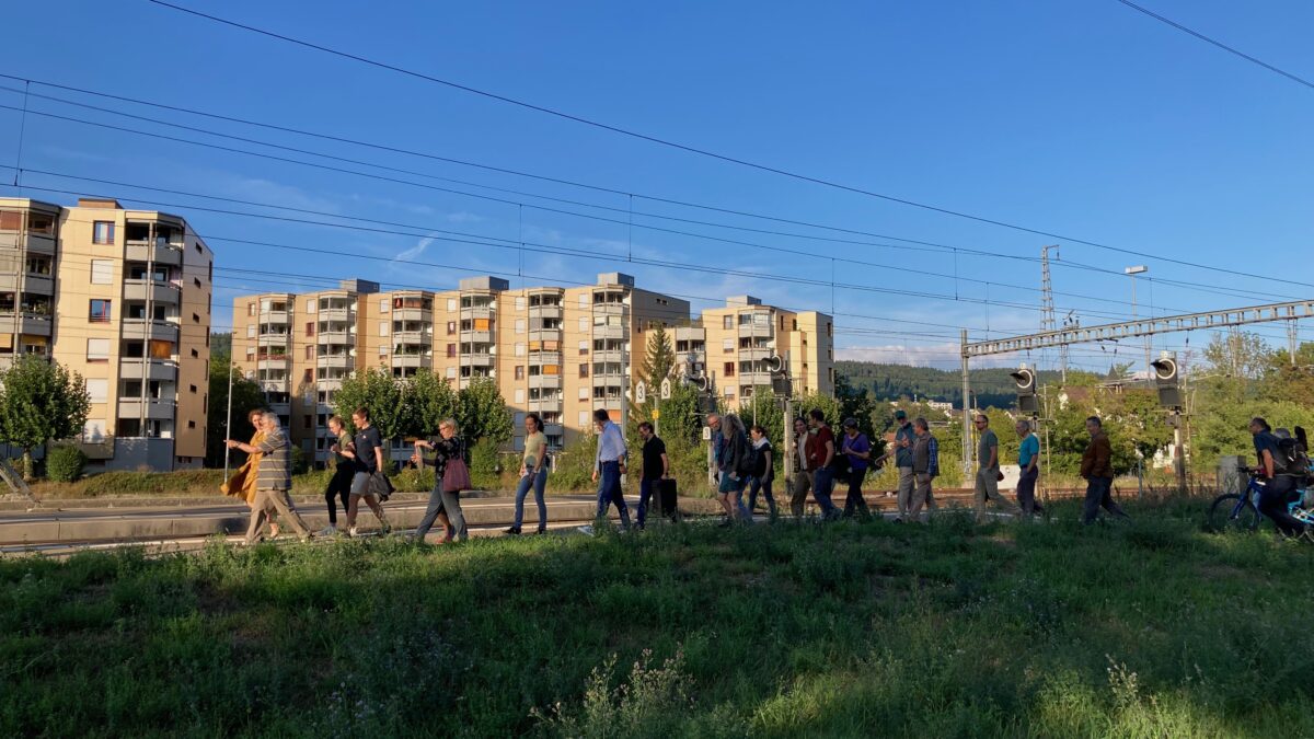 Der letzte Quartierspaziergang führte durch die Entwicklungsgebiete von Turgi - und dies einmal mehr bei schönstem Wetter. Die Organisator*innen hatten dieses Mal für Verstärkung gesorgt und konnten dank Mikrofon und Lautsprecher auch Bahnlärm und Kirchenglocken übertönen. Dies war nötig, denn eines der grössten Entwicklungsgebiete der Gemeinde befindet sich rund um den Bahnhof.