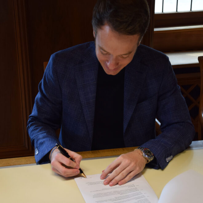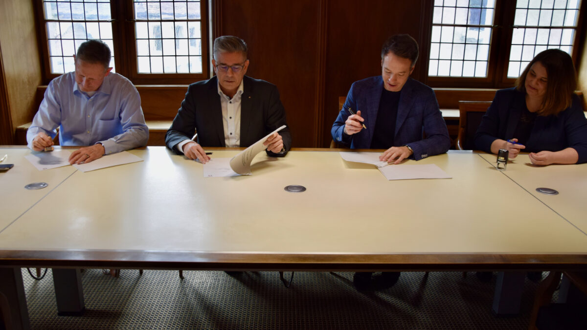 Nachdem die Stimmberechtigten von Baden und Turgi am 12. März 2023 Ja zum Zusammenschlussvertrag gesagt hatten, stand jetzt die Vertragsunterzeichnung an. Im Badener Stadtratssaal setzten Stadtammann Markus Schneider, Gemeindeammann Adrian Schoop, Badens Stadtschreiber Heinz Kubli und Turgis Gemeindeschreiberin Fabienne Fischer ihre Unterschriften unter das Vertragswerk. Die Freude war bei allen Beteiligten spürbar. «Nachdem wir nun so lange an diesem Projekt gearbeitet haben, ist es schön, mit dieser Unterschrift das Ganze zu besiegeln», sagte Markus Schneider. Und Adrian Schoop ergänzte: «Das ist ein historischer Moment.»